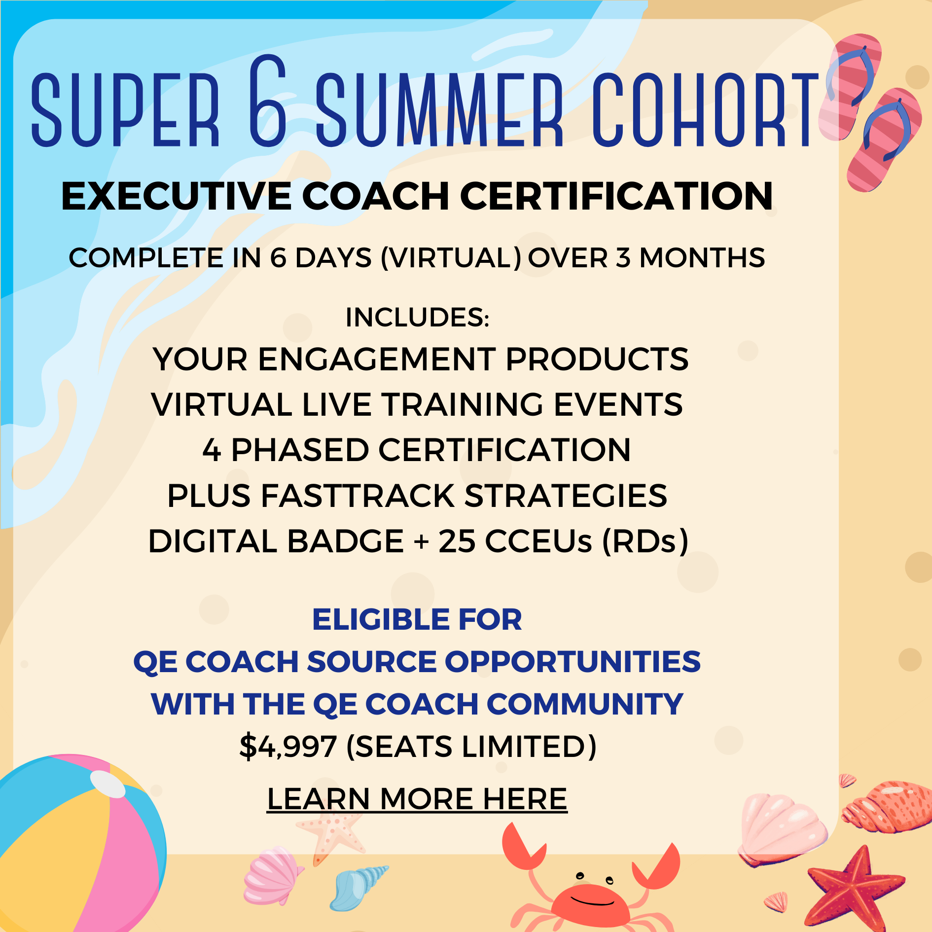 Coaches who earn their Executive Coach Certification can be included in the QE Coach Source process for opportunities in the QE Community.